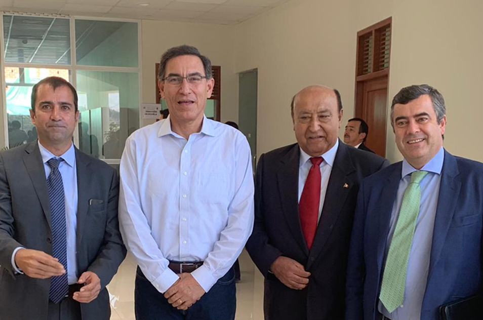 De izquierda a derecha: Carlos Martínez-Almeida, representante del consorcio; Francisco Chavez, presidente de Egesur; Martín Vizcarra,presidente de Perú y Gonzalo García San Miguel, consejero delegado de Sacyr Industrial.