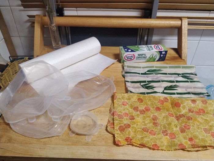 Los tupper de plástico de varios usos, la mayoría, los he tirado, pero sigo conservando los más nuevos. De momento, me he comprado envases de silicona flexibles para ir renovando, para guardar alimentos empezados o que quiera sacar fuera de casa (frutas, bocadillos, queso, etc).