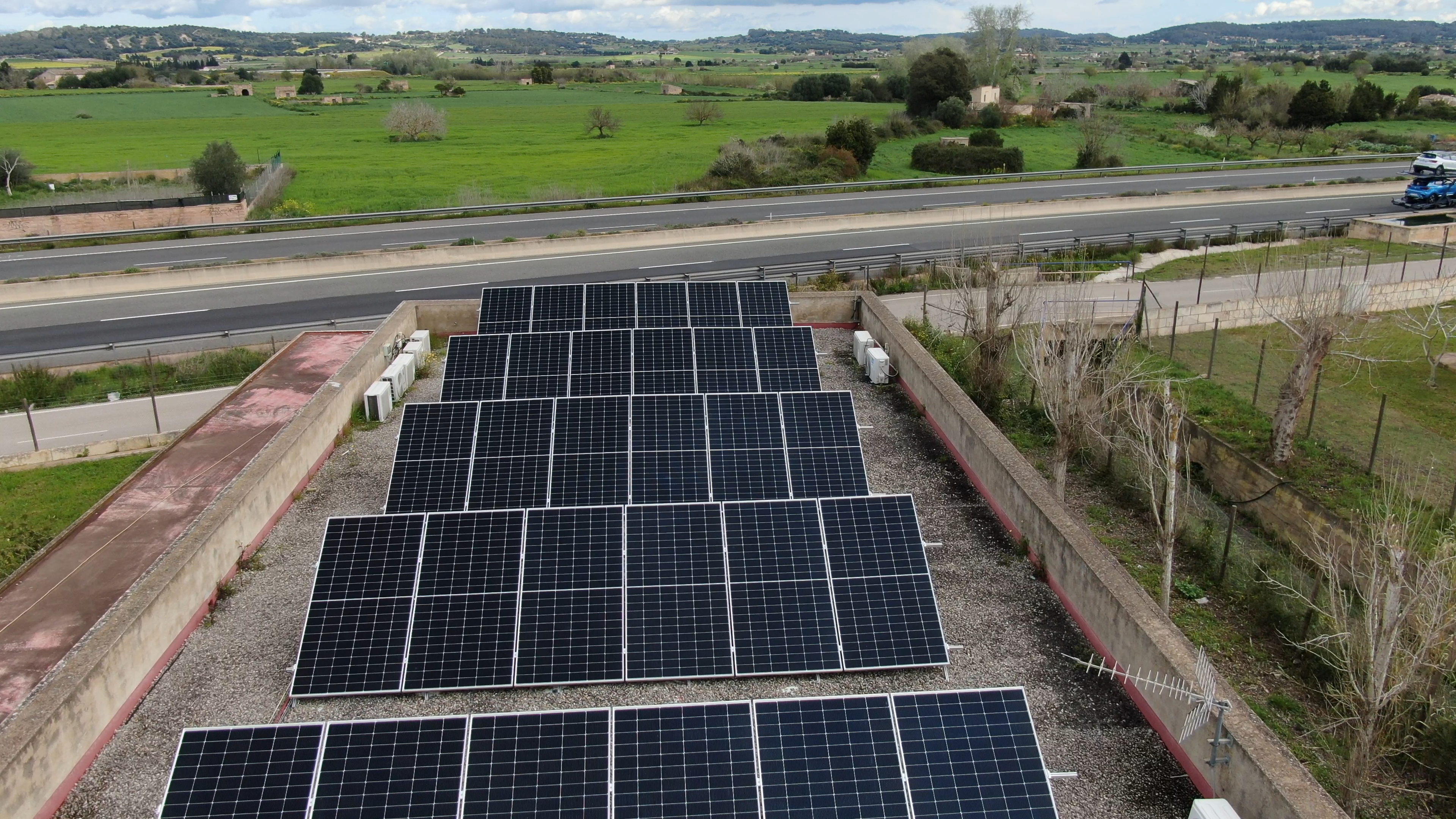 En el Centro de Control de la Autovía del Turia en Valencia, el equipo de Sacyr creamos  una instalación fotovoltaica de 120 kWp, con módulos de 570 Wp y un inversor de 100 kWn. Esta instalación genera unos 170.000 kWh al año y cubre el 34% del consumo del Centro de Control.