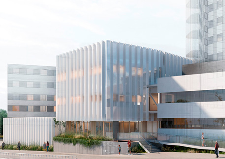 El nuevo edificio se ubicará junto al actual edificio de extracciones y se integrará plenamente en el entorno del hospital. Su núcleo será un búnker que albergará el avanzado equipo de protonterapia, conectado tanto al hospital como al edificio anexo mediante una pasarela en la planta primera.