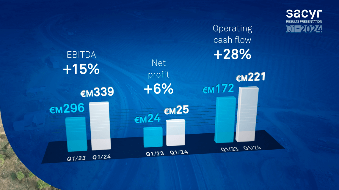 In Q1 2024, Sacyr reached €339 million in EBITDA, 15% higher than in the same period the previous year, and €221 million (+28%) in operating cash flow.