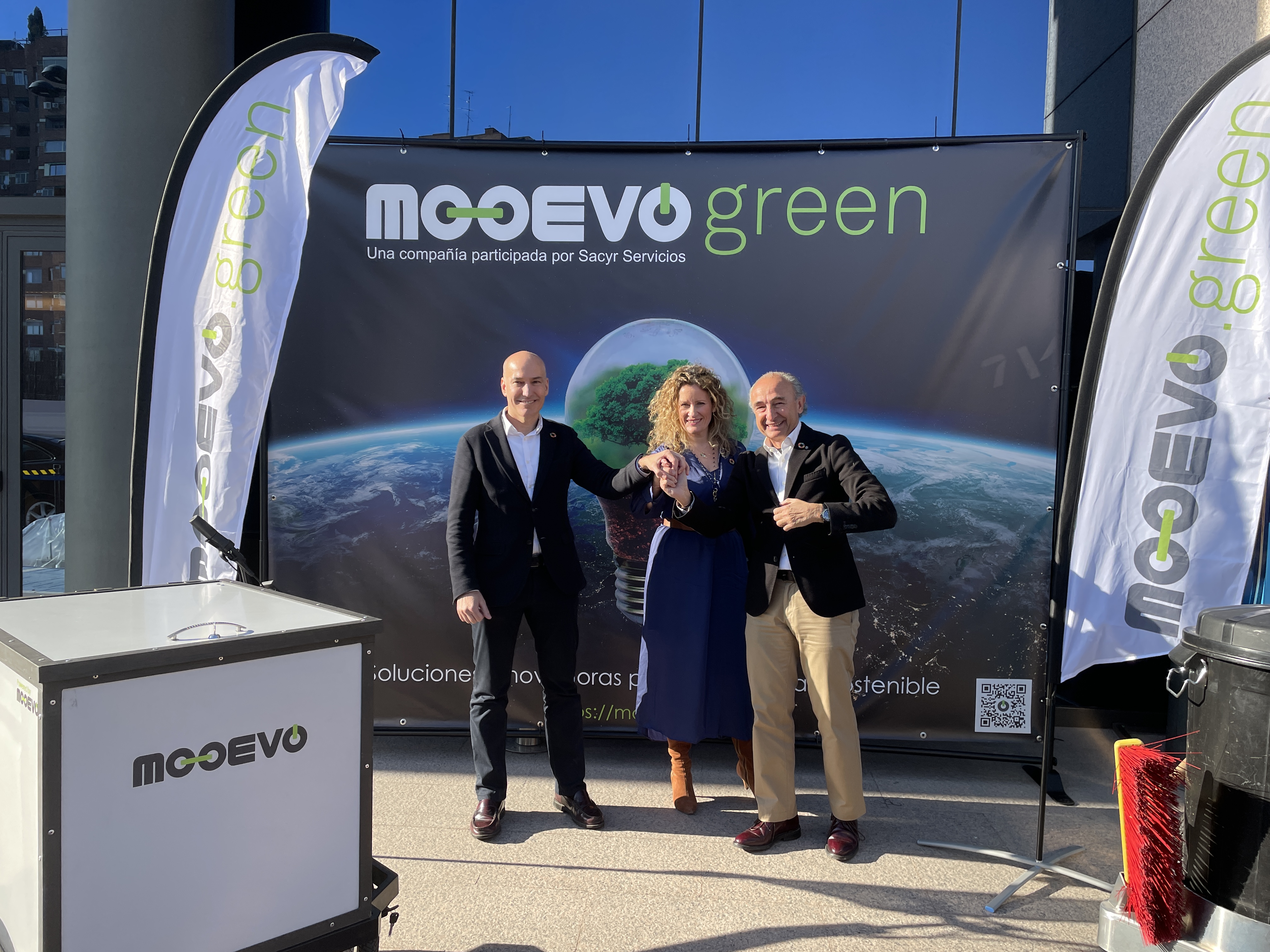 Marco Sosa, Director of Sacyr Green, Ignacio Estelles, CEO of MOOEVO Green, and May López, Director of Development for Empresas por la Movilidad Sostenible, subscribed to the adhesion to the platform.