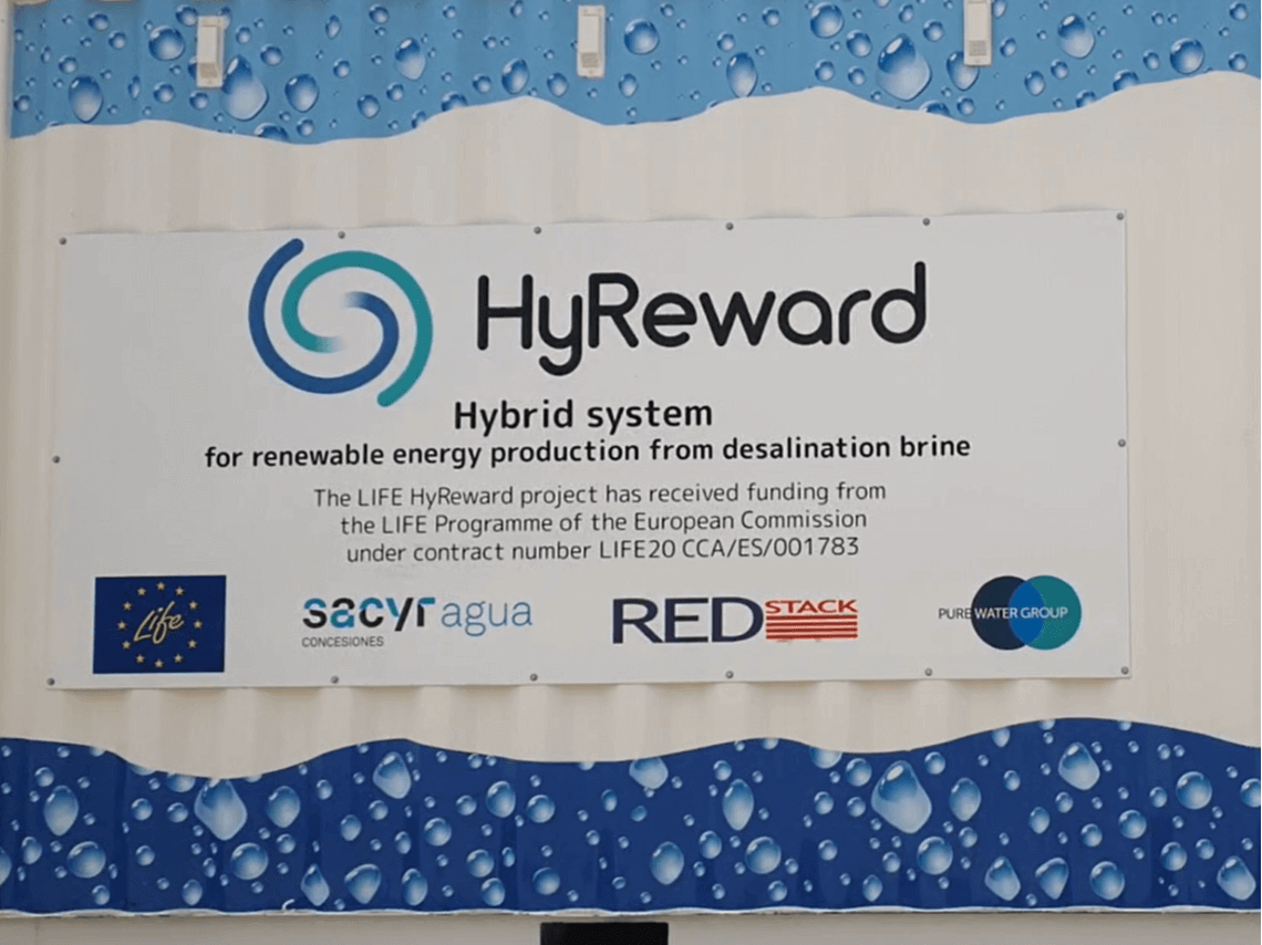 Life HyReward project uses the brine from the reverse osmosis process in seawater desalination as a high-salinity feed stream and treated wastewater as a low-salinity stream. The two allow to generate electricity through renewable blue energy.