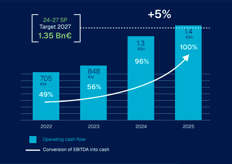 The company achieved an operating cash flow of €1,359 million in 2025, representing a 5% increase from 2024 and exceeded the EBITDA for the period, demonstrating the strength of the company’s concession-based model. Operating cash flow is the most indicative metric of growth and value creation for a concessions company like Sacyr, where 93% of EBITDA is now derived from concession assets. The majority of these assets are either free from demand risk or benefit from risk mitigation mechanisms.