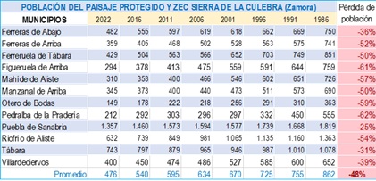 No son simplemente nombres de municipios, son pueblos reales que han sobrevivido durante siglos al paso de la Historia, gracias a los esfuerzos de sus moradores, cuya descendencia hoy ha sido progresivamente expulsada de sus pueblos. Los datos porcentuales de pérdida de población incluidos en las tablas se refieren al valor porcentual de variación de la población respecto a la población al inicio del periodo. Todos los datos demográficos proceden del Instituto Nacional de Estadística (INE).
