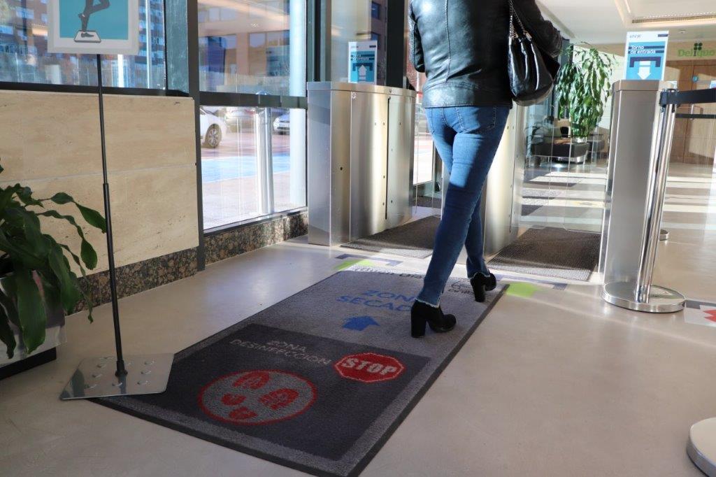 Desde el inicio de la crisis sanitaria, Sacyr ha destinado tres millones de euros a implementar diferentes iniciativas para seguir ofreciendo espacios y entornos laborales seguros a sus clientes y empleados, velando en todo momento por minimizar el contacto entre personas y extremar tanto las condiciones de higiene y limpieza como las medidas de protección individuales.
