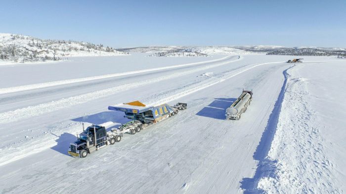 La Tibbitt to Contwoyto Winter Road, en los Territorios del Noroeste y Nunavut, Canadá, es la carretera de transporte pesado sobre hielo más larga del mundo. Tiene entre 400 y 600 kilómetros y conecta Tibbitt Lake, cerca de Yellowknife, con minas de diamantes como Ekati, Diavik y Gahcho Kué. Es una ruta estacional, reconstruida cada año desde diciembre y operativa solo entre febrero y finales de marzo. El 85% del recorrido está sobre lagos congelados y el 15% restante cruza tierra firme en tramos cortos. Pese a que es una de las carreteras mejor gestionadas y más seguras de Norteamérica debido a su estricta vigilancia, se considera peligrosa por varias razones: el hielo debe alcanzar al menos 74 centímetros para abrirse y 100 centímetros para soportar cargas completas. Los camiones cargados tienen un límite de velocidad de 25 kilómetros por hora. Los conductores pueden enfrentar tormentas de nieve, vientos fuertes y visibilidad nula. El trayecto puede durar entre 14 y 18 horas en aislamiento total. Una de las principales amenazas para esta carretera es el cambio climático, que puede acortar la temporada operativa o debilitar el hielo.