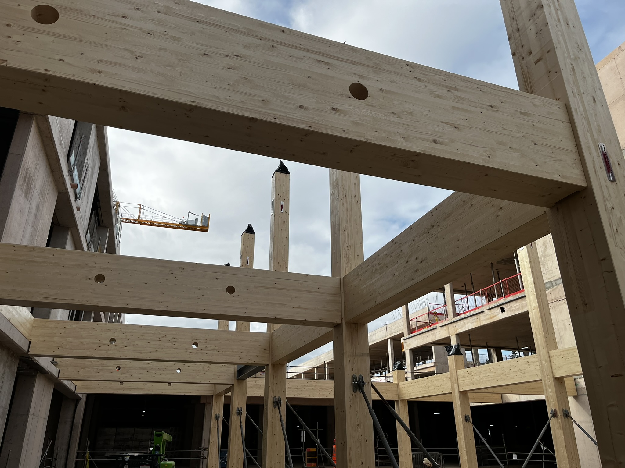 Work has started on the installation of the large timber frame inside our new Velindre Cancer Centre - a major milestone in the project