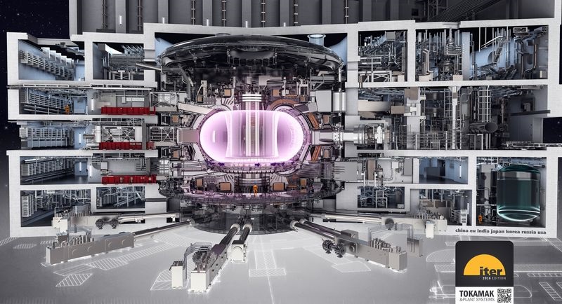 The reactor consists of a large 23,000-tonne doughnut-shaped Tokamak-type magnetic confinement chamber. This design was already conceptualised by Soviet scientists in the 1950s and an international committee to oversee its development was formed in 1986. The plan is that, when testing is completed, ITER could lead to a fusion power plant capable of producing electricity in the same way as existing thermal power plants, which burn fossil fuels or split radioactive elements to generate heat and produce steam, which is used to spin a turbine to produce electricity.